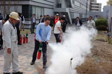 平成29年4月15日(土)に先端化学科防災訓練・講習会が行われました。この防災訓練・講習会は、研究室に所属する全スタッフ・学生を対象として、毎年独自に実施しているものです。火事を想定した避難訓練、消火訓練および教員による講習会が行われました。